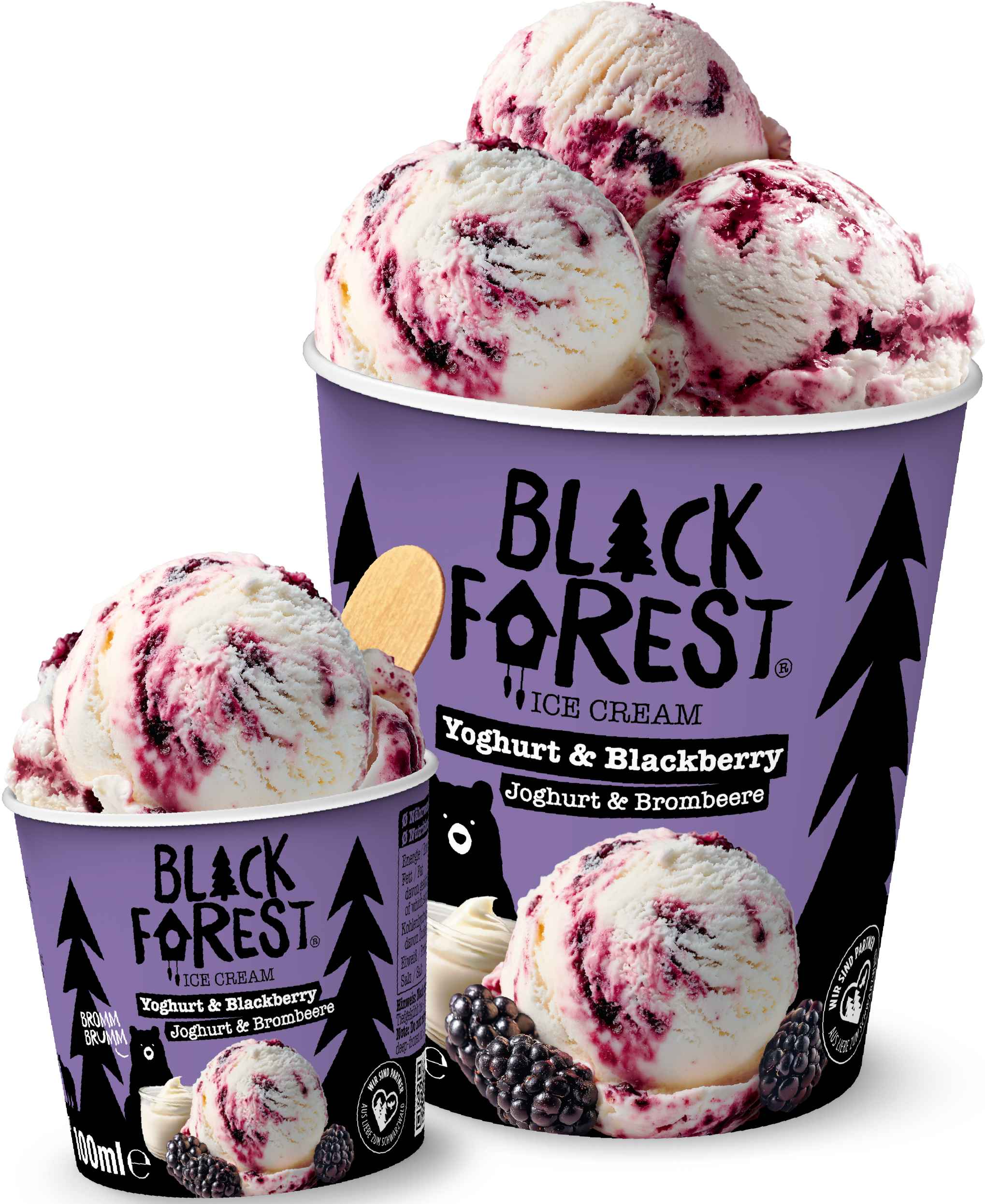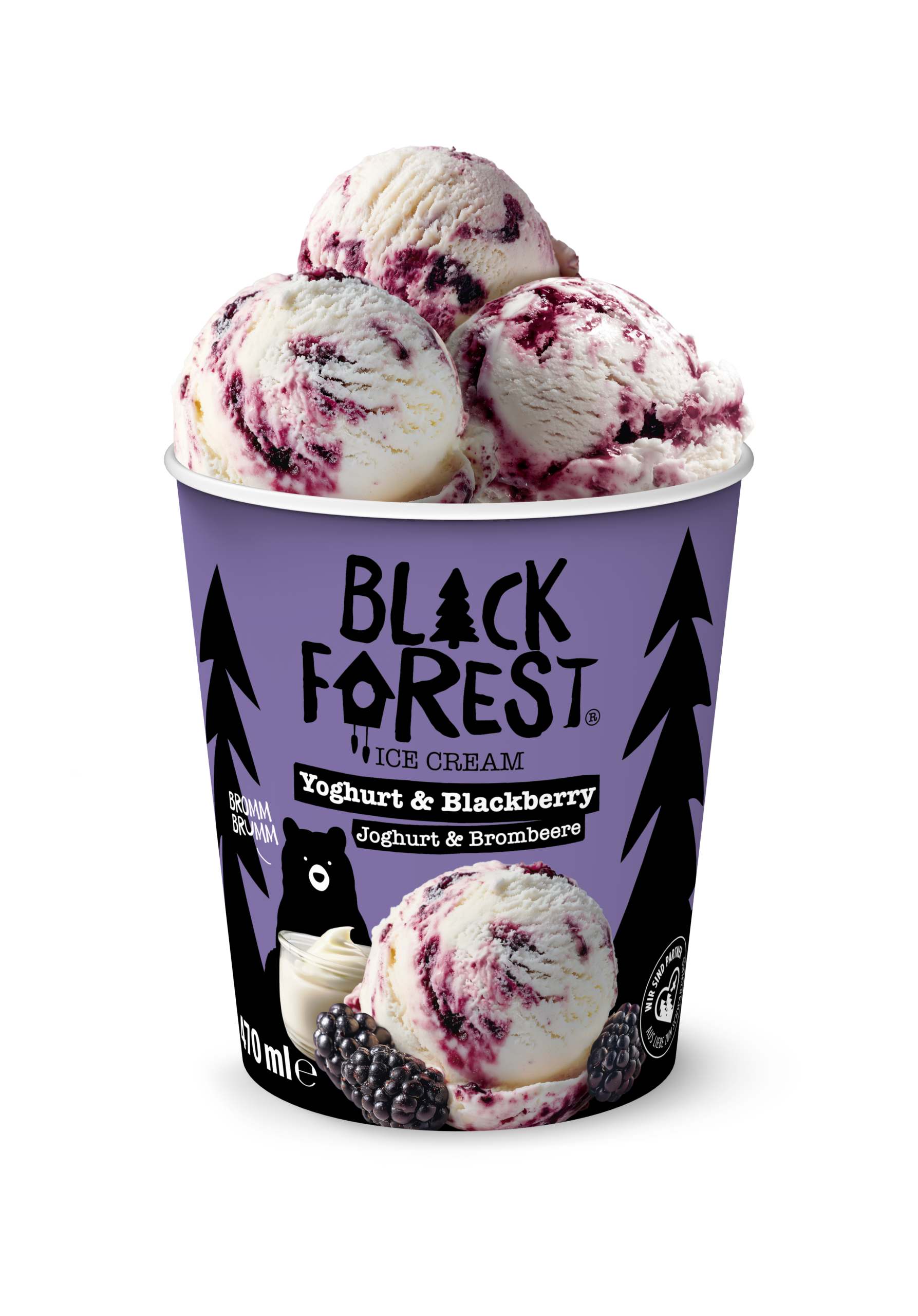 Ganz ruhig bleiben – hier kommt der cremige Beerenmoment aus dem Unterholz. Mildes Joghurt-Eis trifft auf dunkle Brombeeren und sorgt für genau die richtige Mischung aus Frische und Wald-Vibes. Fruchtig und einfach bärenstark.